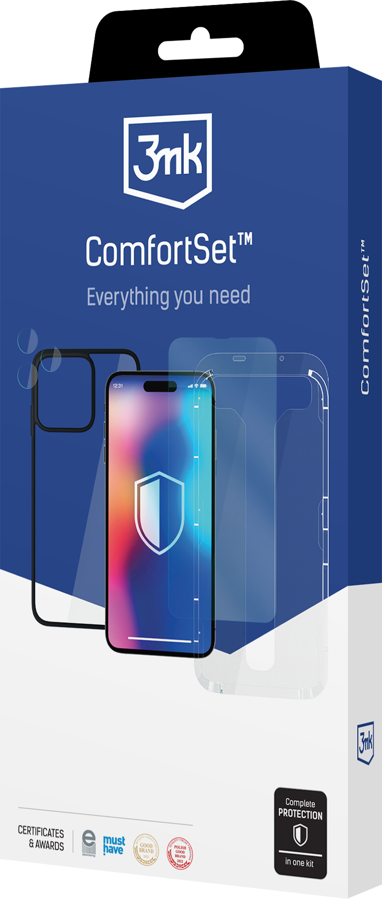 Comfort Set 4in1 - kompleksowa idealnie spasowana ochrona all-in-one dla Twojego smartfona. Poczuj pewność, że Twój smartfon jest w najlepszych rękach. Zaufaj naszym flagowym produktom, tworzącym niezwykłe zabezpieczenie dla Twojego urządzenia.