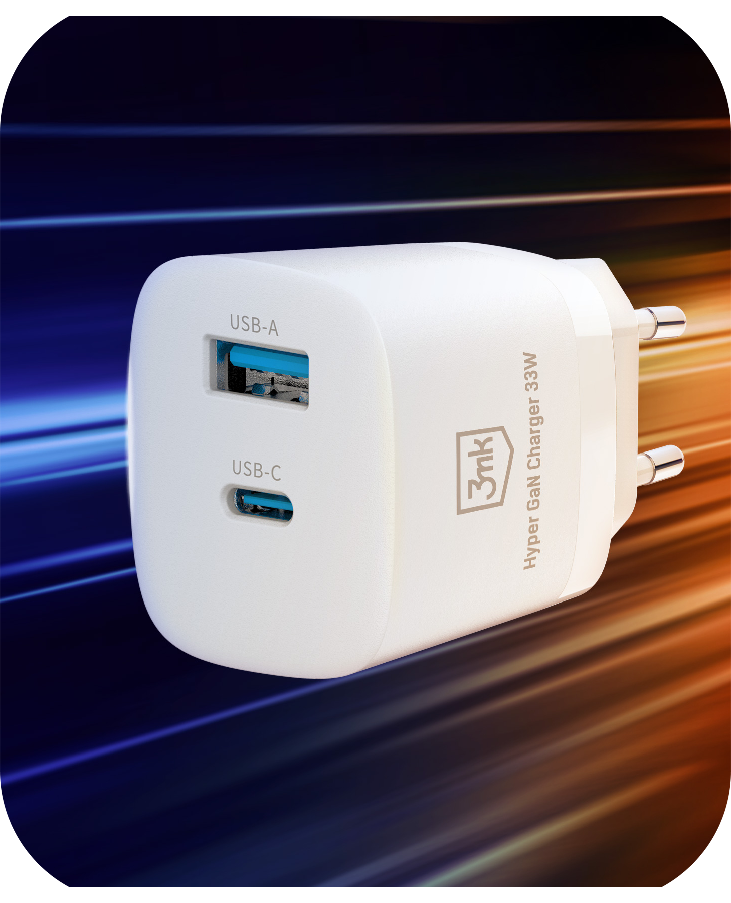 W Hyper GaN Charger 33W zastosowaliśmy innowacyjny tranzystor oparty o półprzewodnik GaN. W rezultacie ładowanie baterii jest wysoce wydajne i energooszczędne pomimo niewielkich rozmiarów ładowarki. Podłączasz dwa urządzenia, ładujesz baterie i chowasz ładowarkę do kieszeni. Hyper GaN Charger 33W to wygoda i szybkość, której warto doświadczyć!